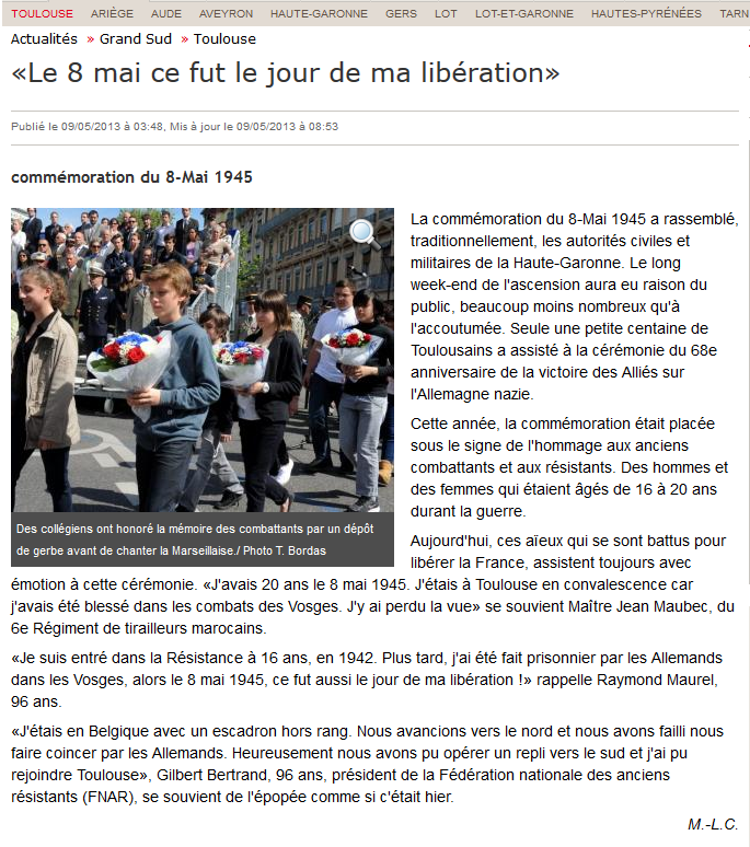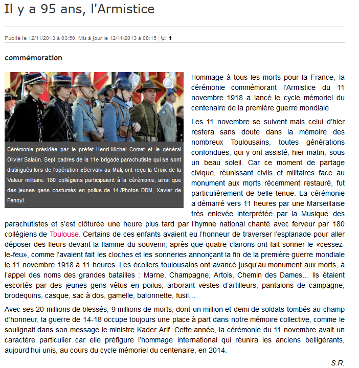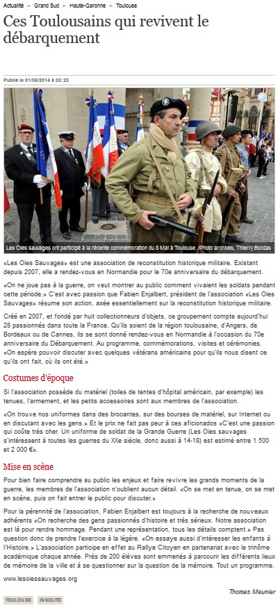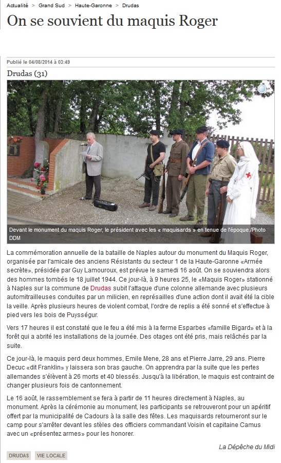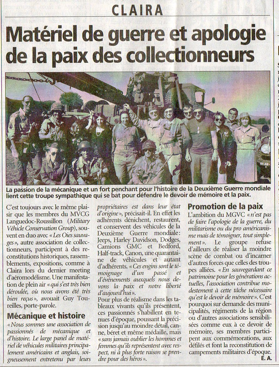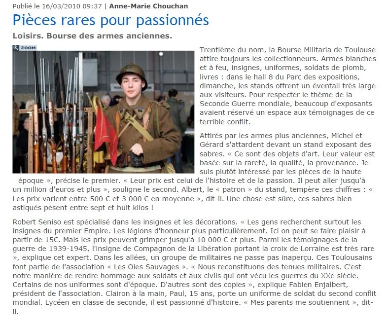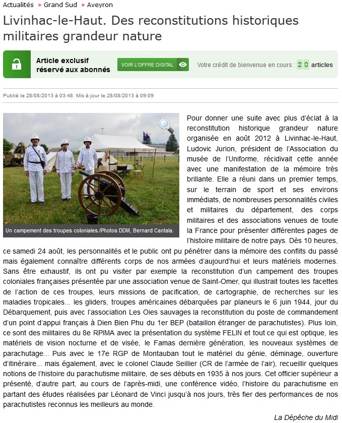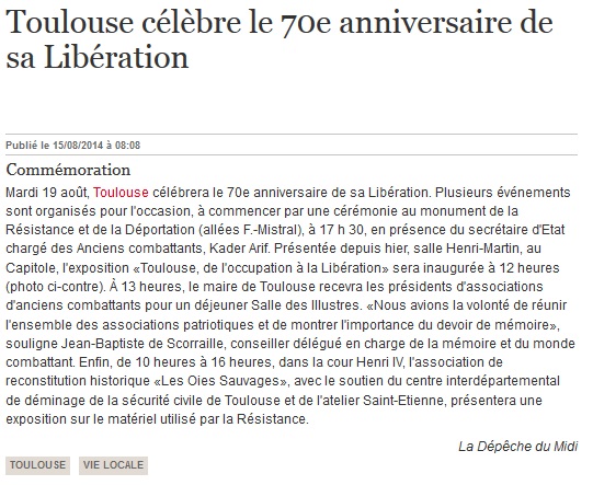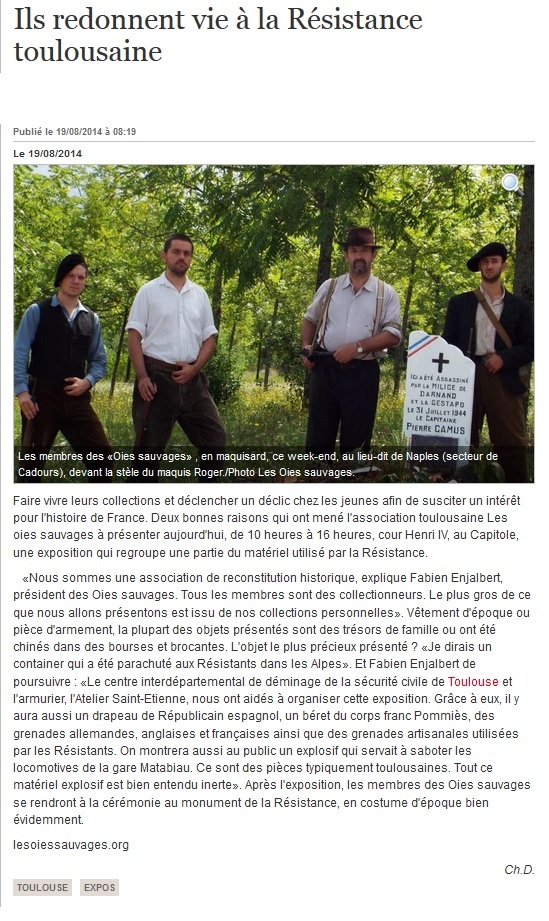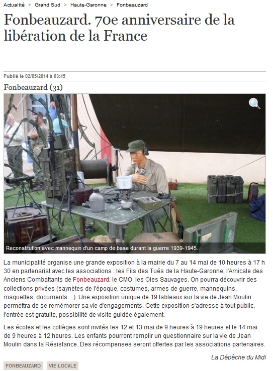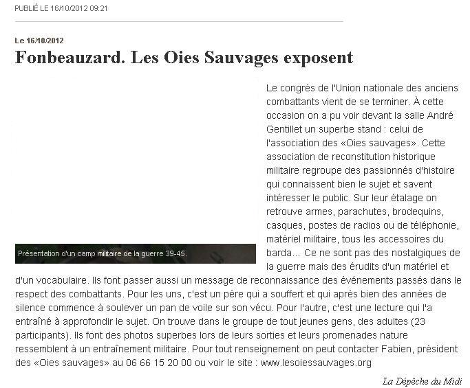 2012 Article dans La dépèche du midi sur notre exposition lors du congrès de l'UNC: