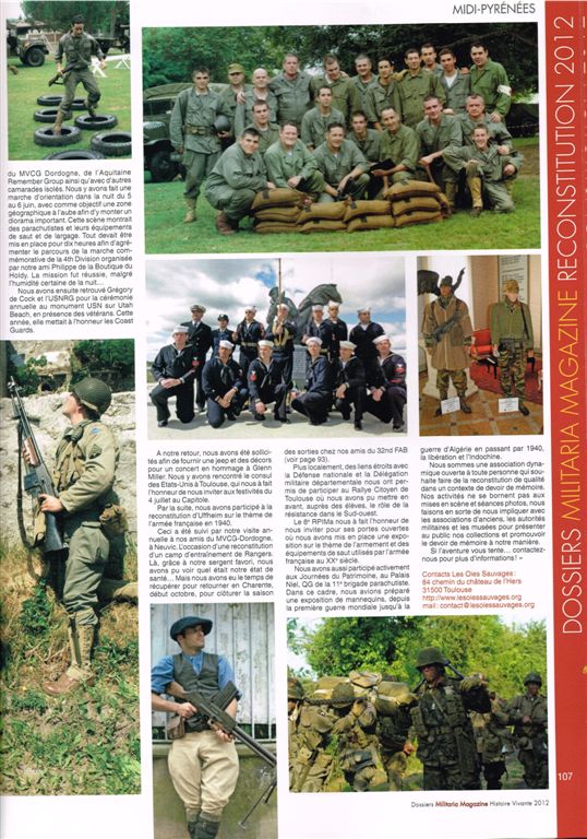 2012 Article dans Militaria Magazine sur notre semaine en Normandie pour les commémorations: