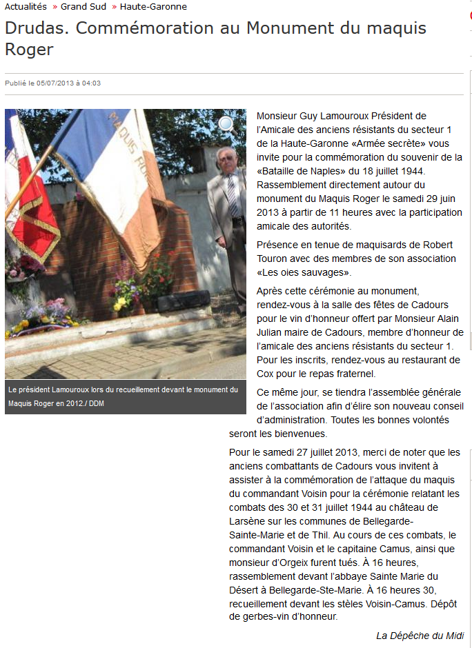 2013 Article sur le camp Durestal en Dordogne et sur le travail d'un de nos membres :
