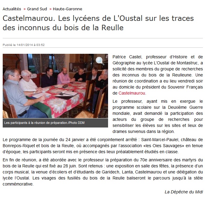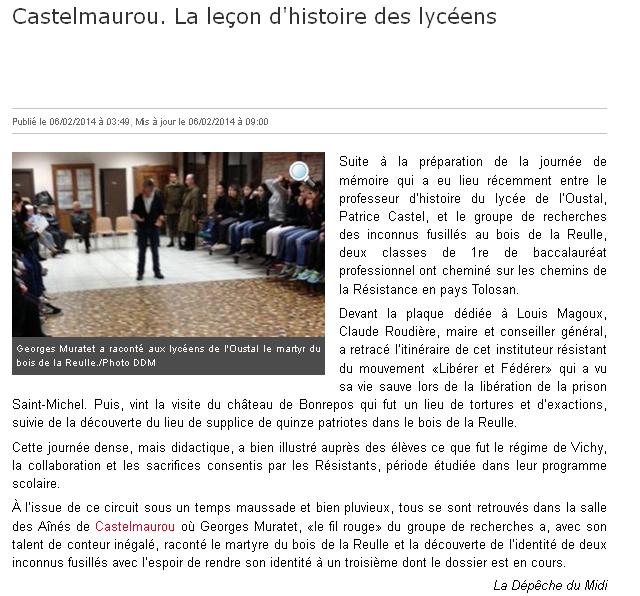 2014 Action sur la résistance avec le Lycée l'Oustal de Montastruc la Conseillère: