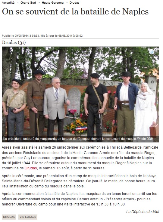 2013 Cérémonies à Naples en mémoire au Maquis Roger :
